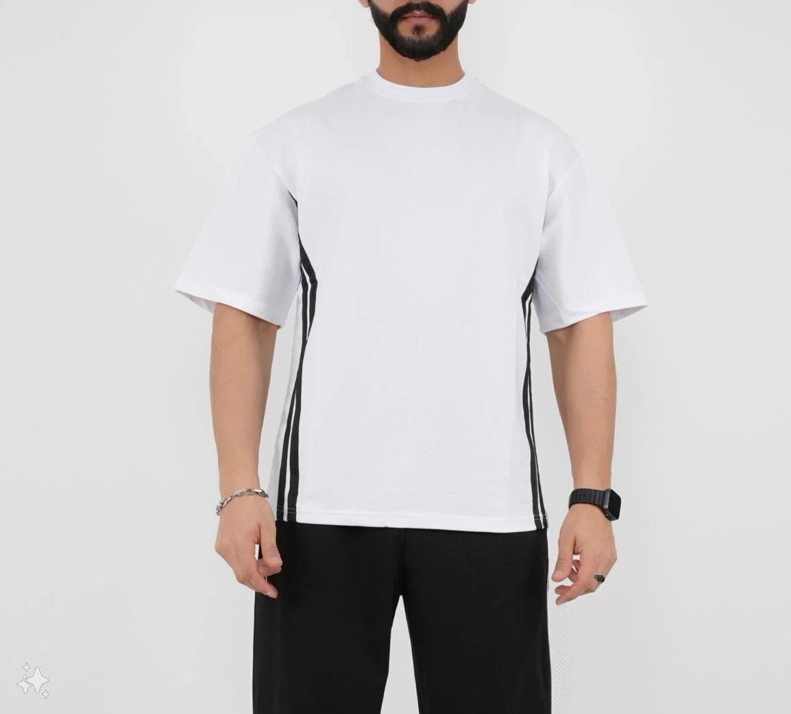 تيشيرت كبير الحجم للجنسين بخطوط جانبية