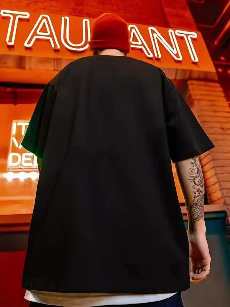 تي شيرت رجالي بمقاسات كبيرة مطبوع عليه بطاقة مطبوعة بلون واحد وبأكمام قصيرة برقبة قصيرة كاجوال تي شيرت رجالي بمقاسات كبيرة مطبوع عليه بطاقة مطبوعة بلون واحد وبأكمام قصيرة برقبة قصيرة كاجوال