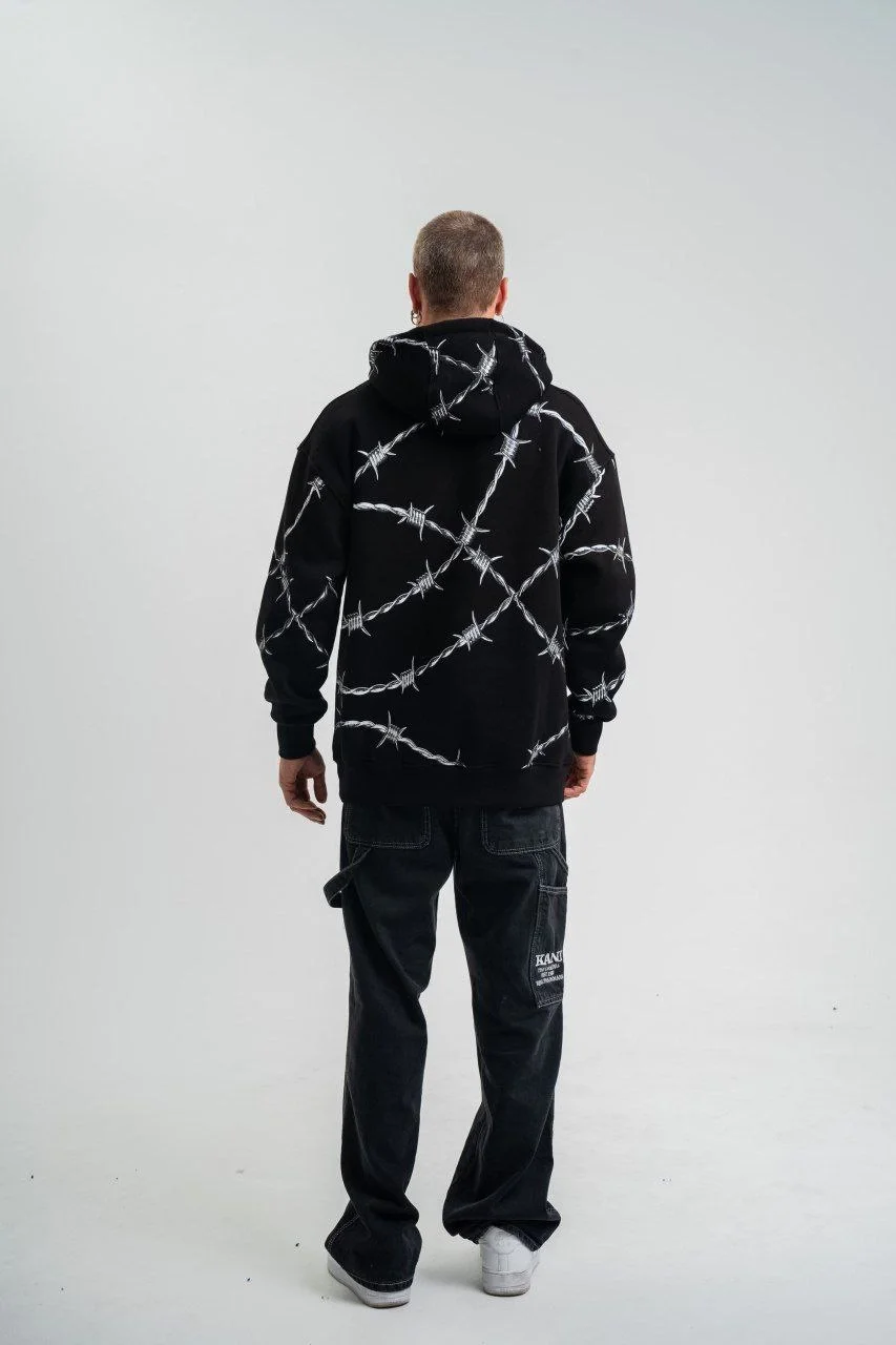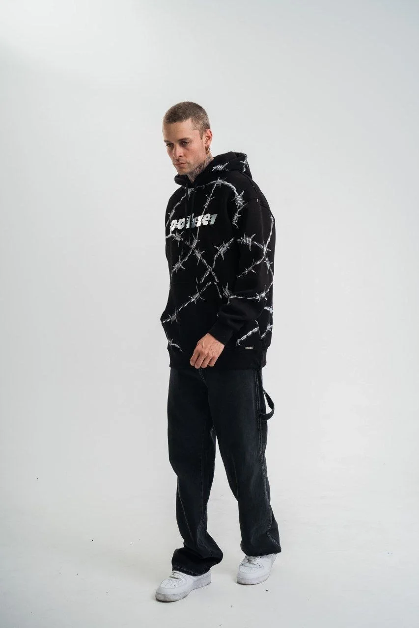قميص سويت شيرت مطبوع عليه رقائق معدنية وألواح للجنسين – أسود