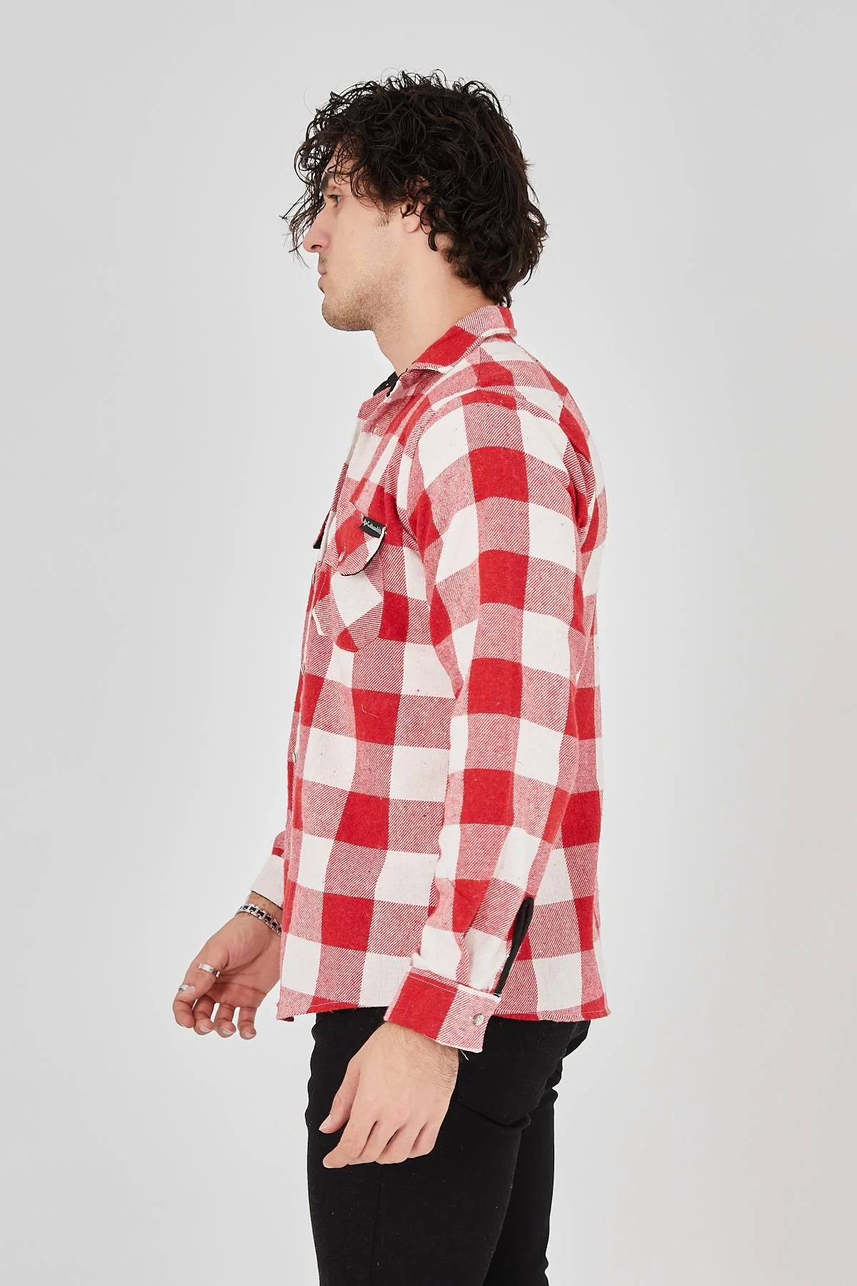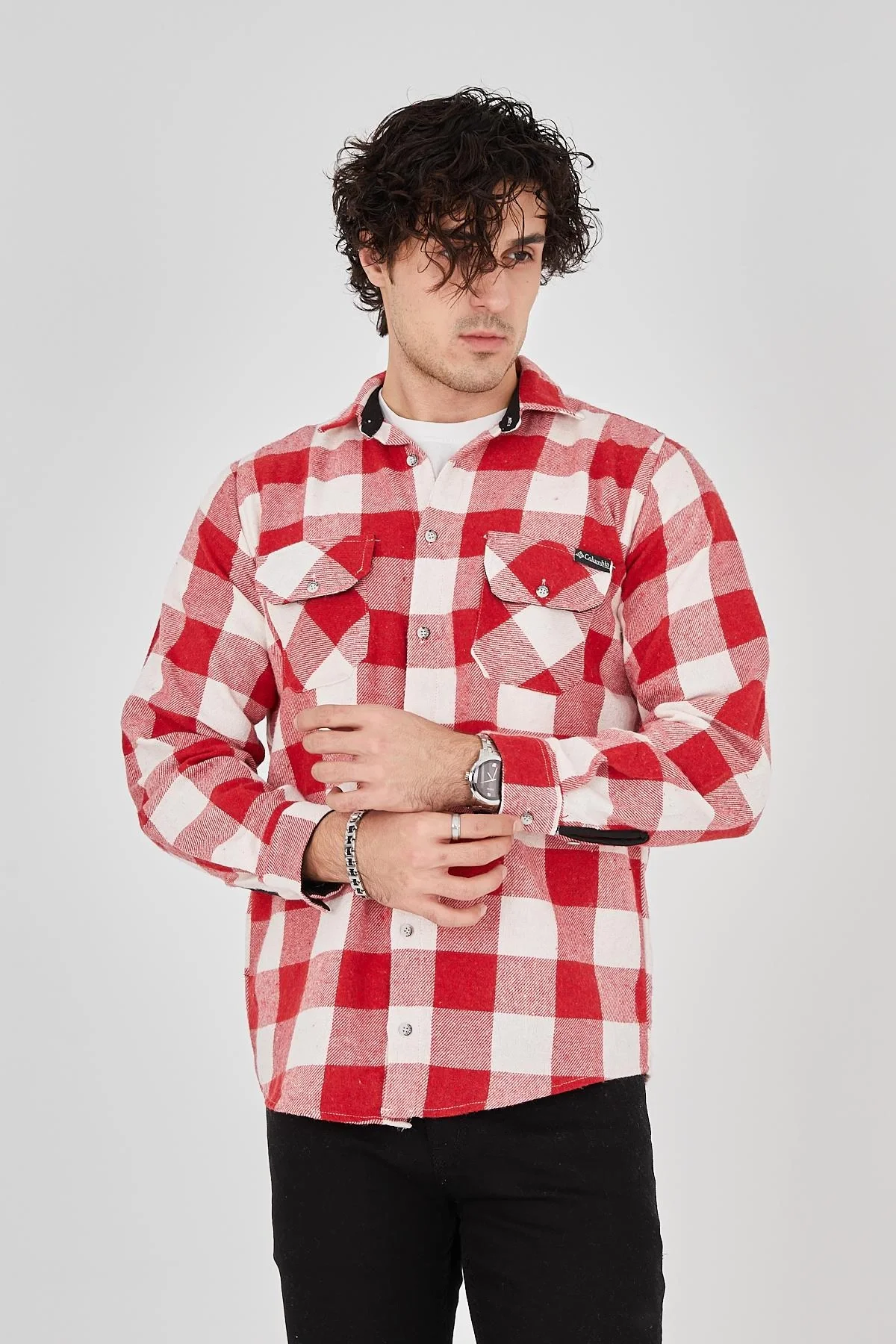 Erkek Oduncu Gömlek – Uzun Kollu, Şardonlu Kumaş, Kareli Desen, Regular Fit, Manşetli, Çift Cepli, Rahat Günlük Bahar & Kış Stil – Pembe