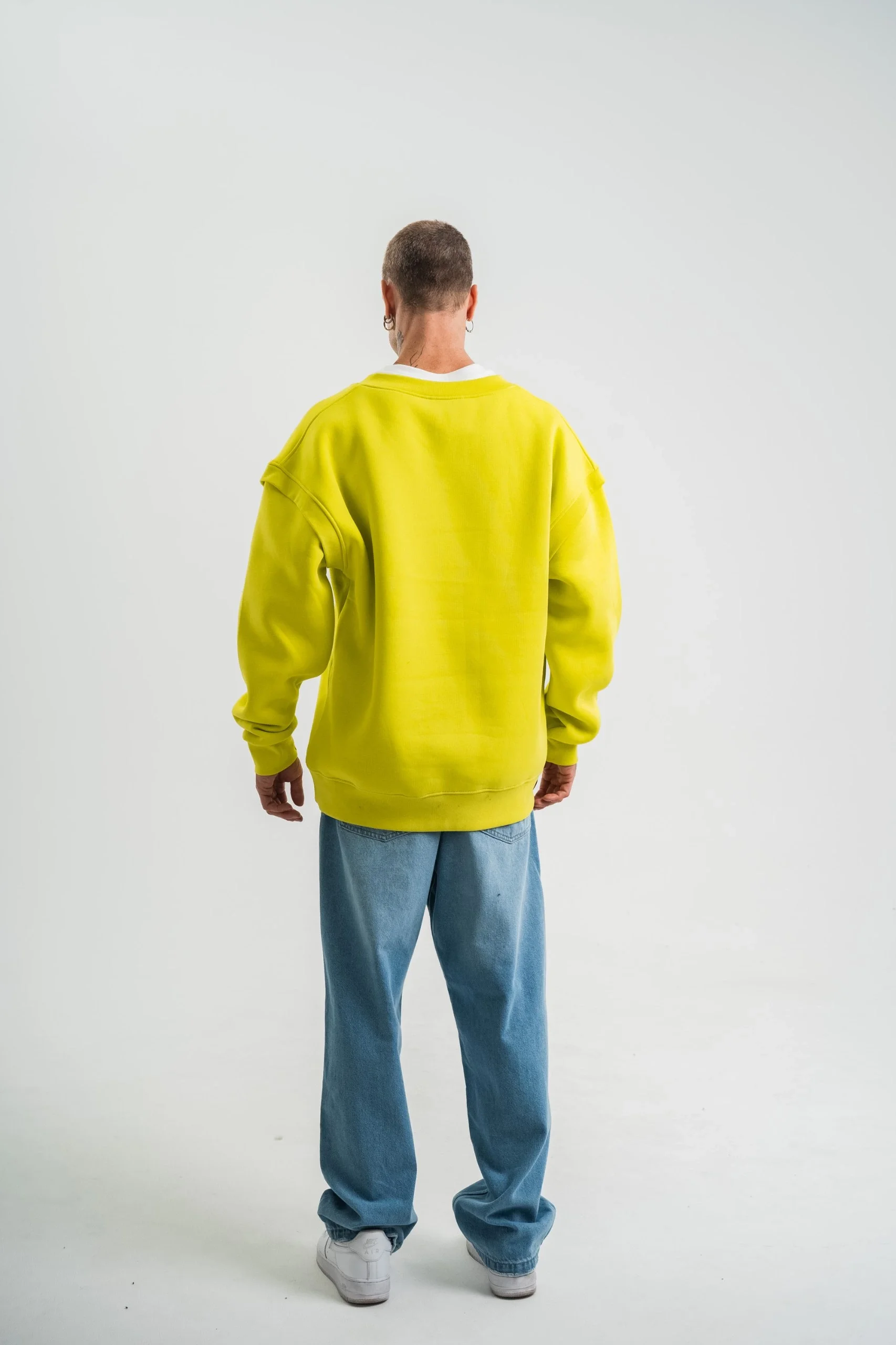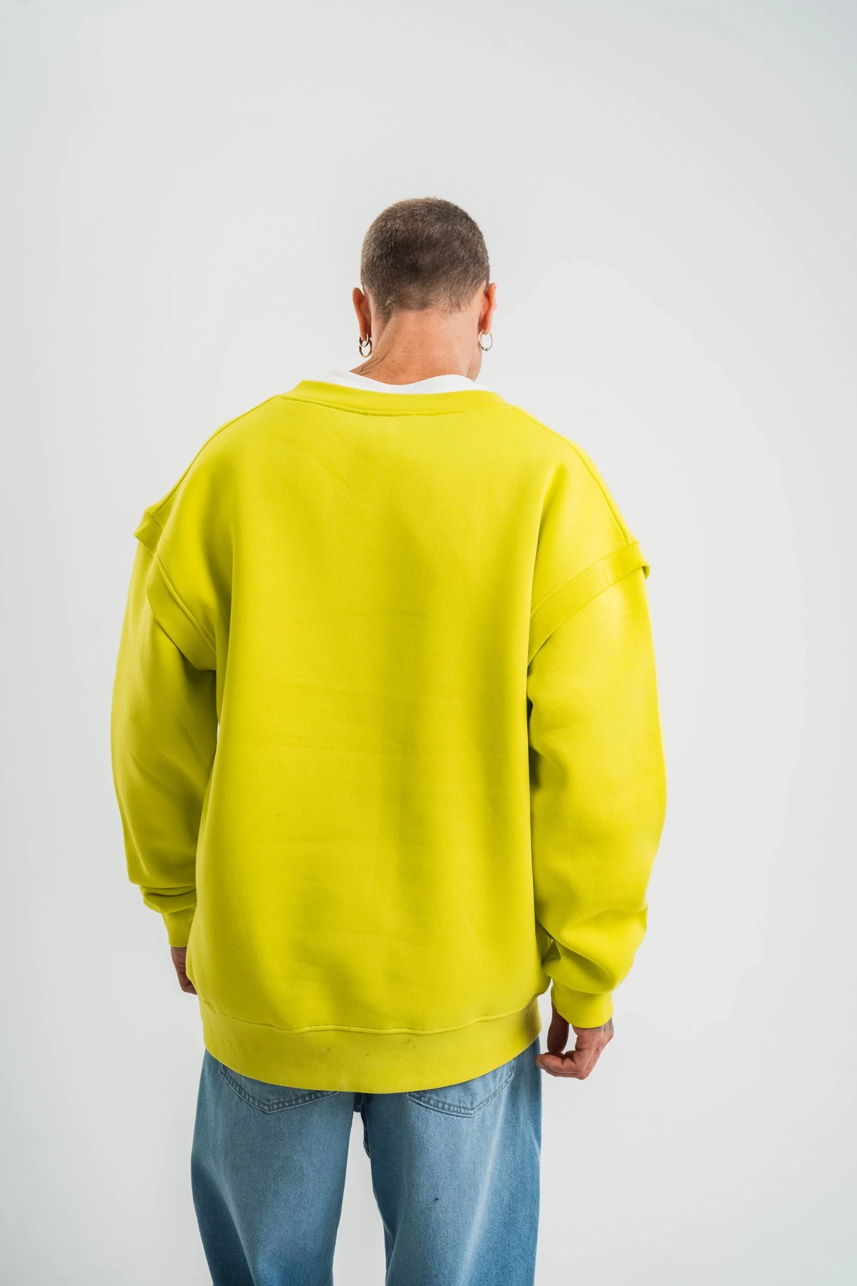 Geniş V yaka Kol Ribana Detaylı SweatShirt – Sarı