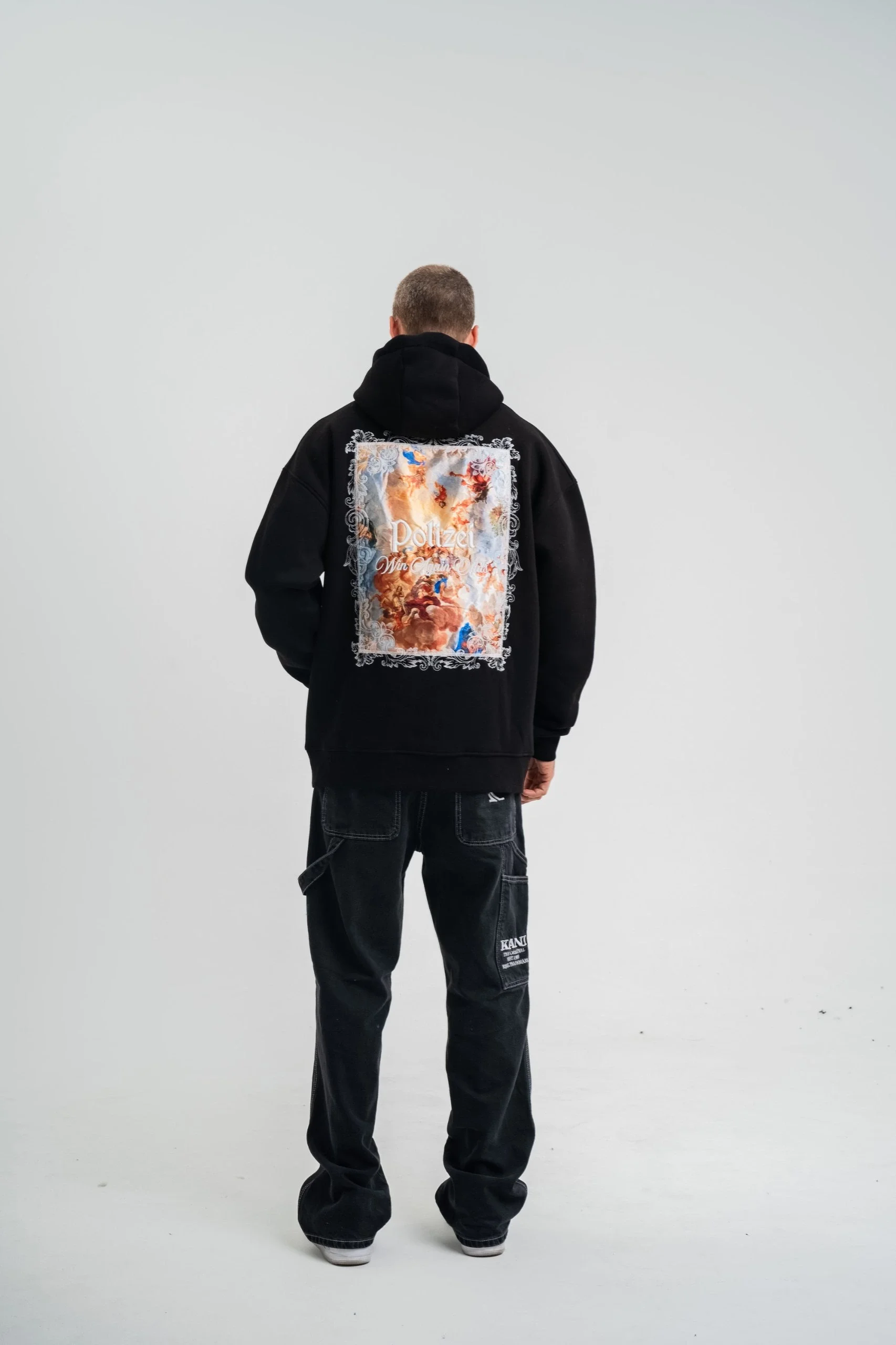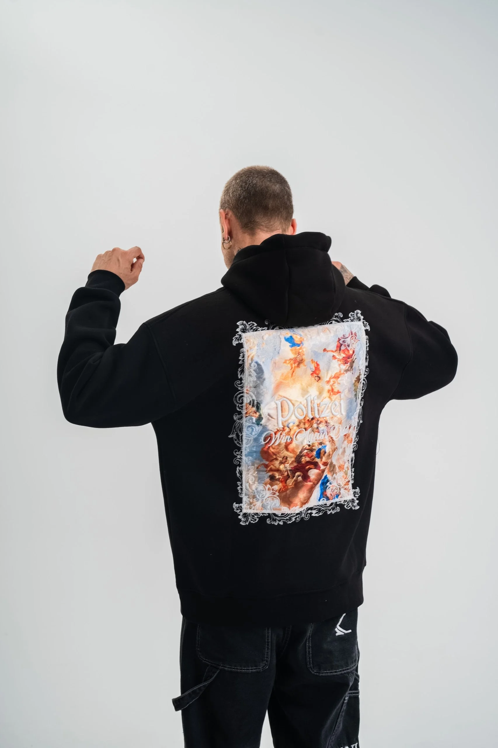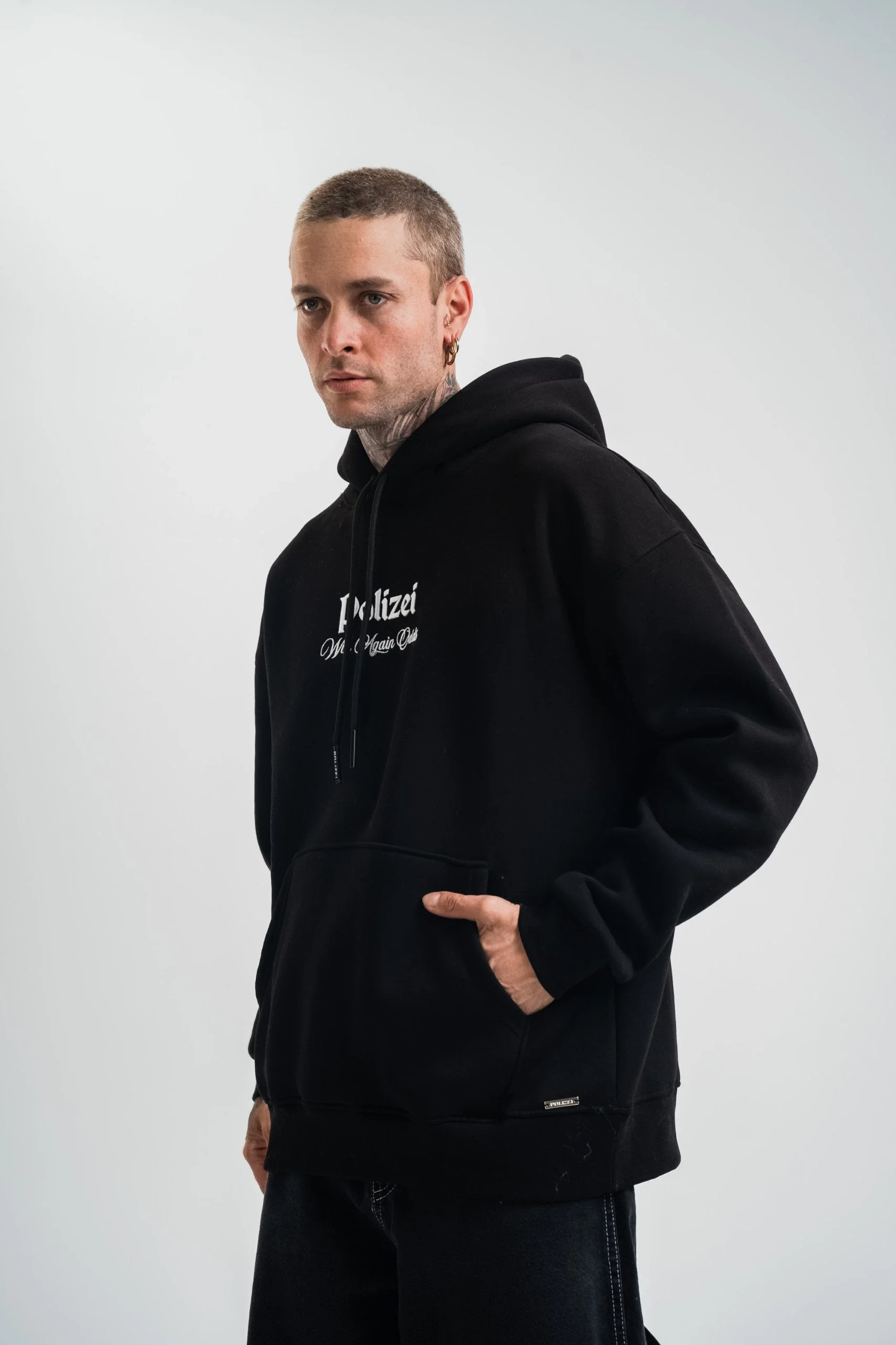 Üç İplik Kapşonlu Dijital Patchli SweatShirt – Siyah