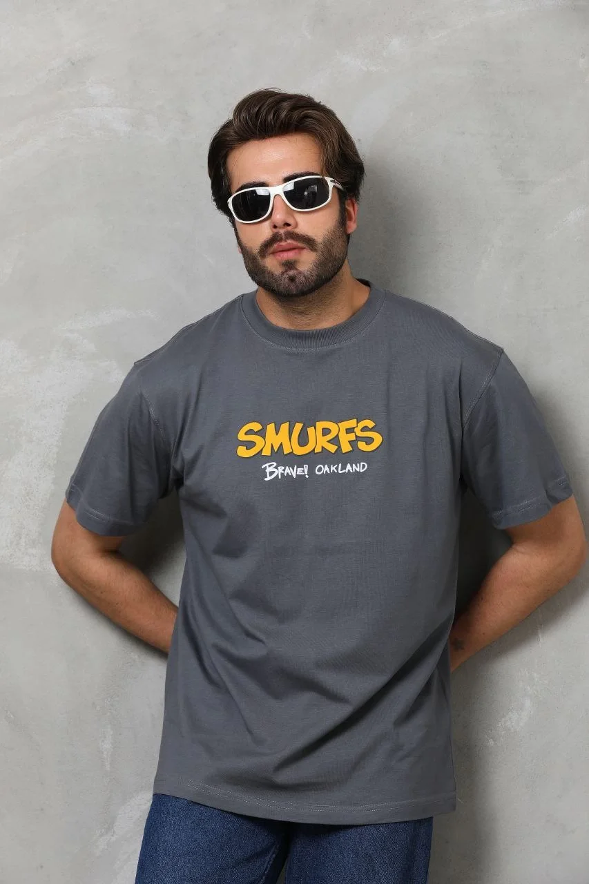 Unisex Oversize Baskılı Bisiklet Yaka T-Shirt – Füme