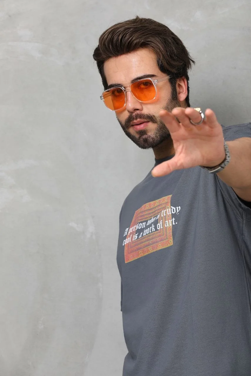 Unisex Bisiklet Yaka Baskılı Oversize T-Shirt – Füme