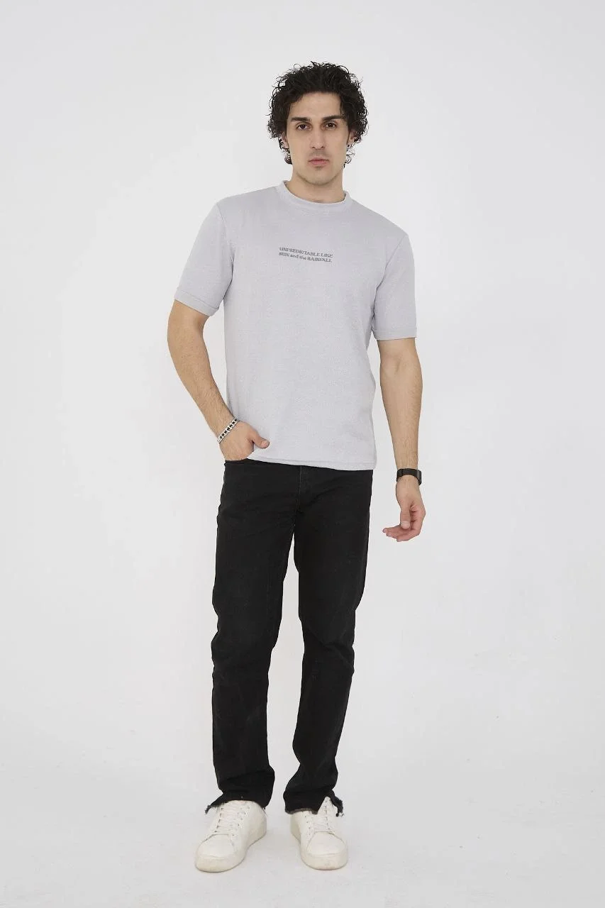 Unisex Bisiklet Yaka Slim fit T-Shirt- Boyalı Gri
