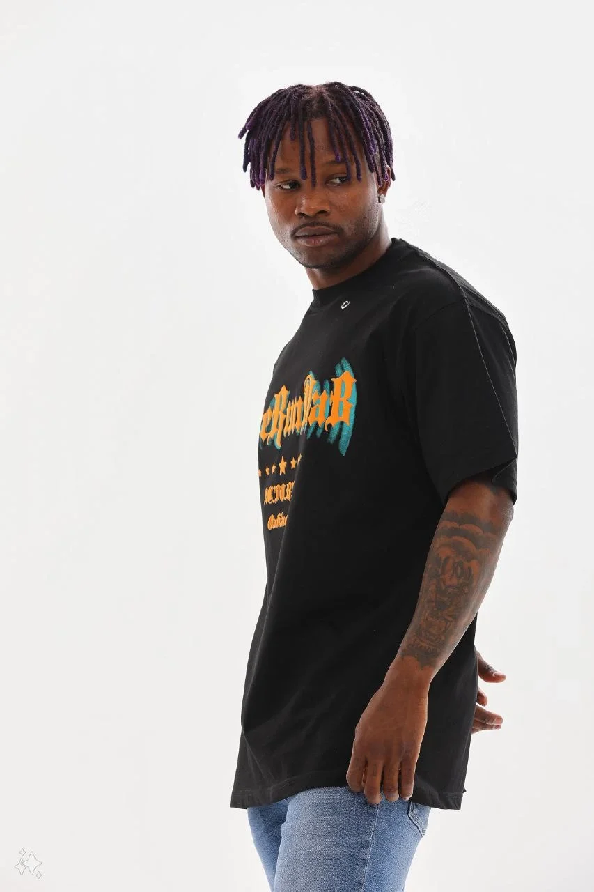 Unisex Kuşgözü Detaylı Baskılı Oversize T-Shirt – Siyah